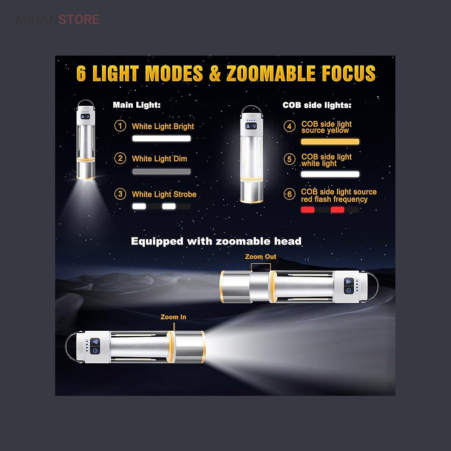 قابلیتهای ویژه چراغ قوه حرفه ای چندکاره YESNICE علاوه بر ویژگیهای اصلی خود، قابلیتهای جانبی مهمی نیز دارد که آن را به یک محصول همهکاره تبدیل میکند.