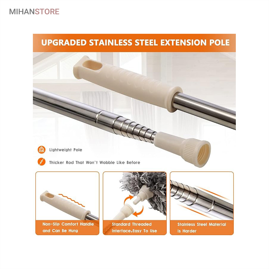 گردگیر تاشوی دسته بلند جهت نظافت و گردگیری و غبار روبی فضاهای دور از دسترس نظیر روی کابینت ها ، کنج سقف ها ، روی کمدها ،سطوح لوستر و چراغهای سقفی ، داخل آرک نورپردازی های مخفی و نظایر آن دارای کاربرد بوده و بخوبی در تمیزی محیط به شما کمک میکند . این محصول دارای دسته تاشو از جنس استیل بوده که بصورت تلسکوپی براحتی داخل خود جمع میشود و در کمترین فضای ممکن جای میگیرد .