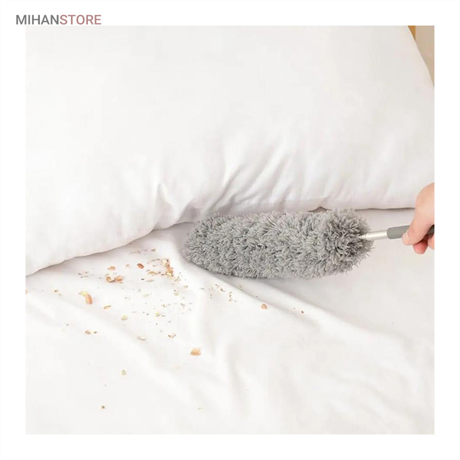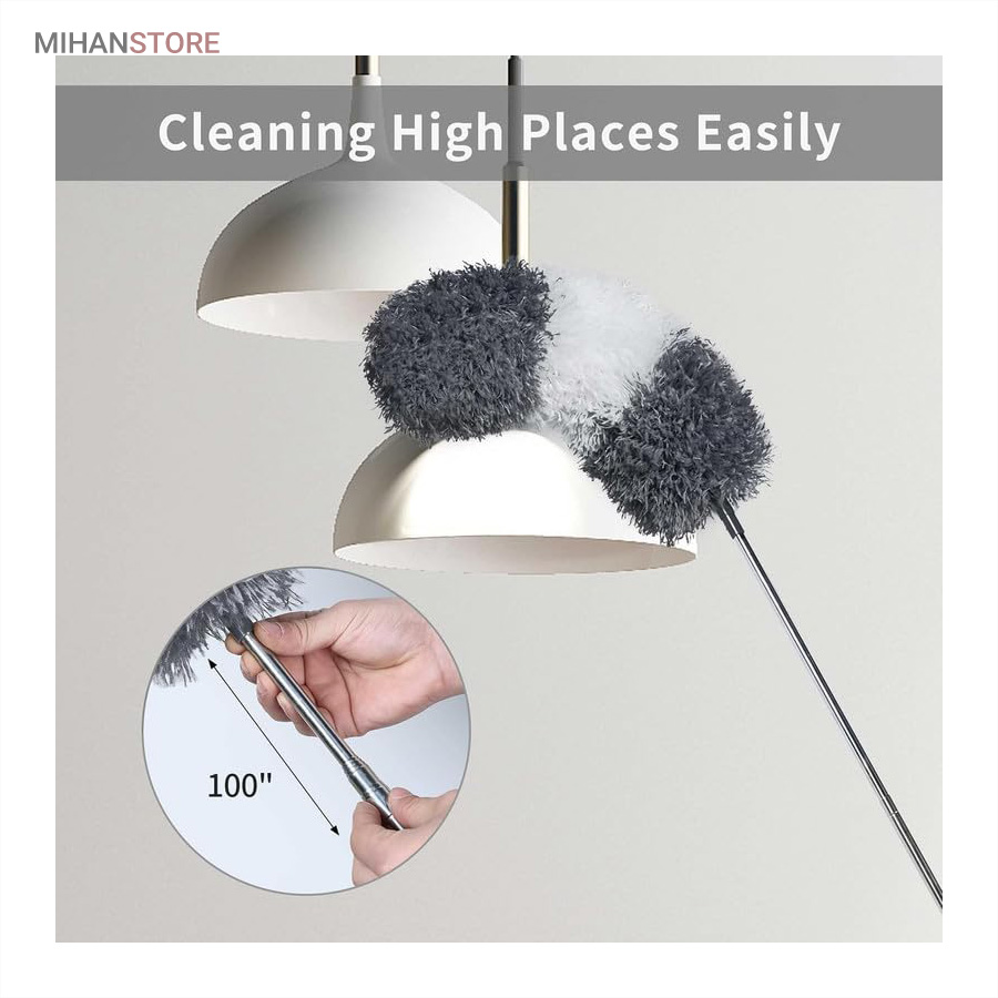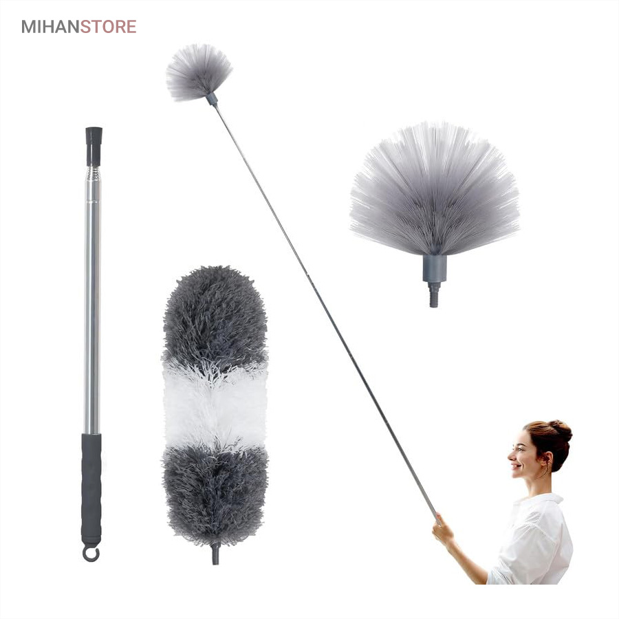 یک ابزار حرفهای و کاربردی برای تمیزکاری سطوح بلند و نقاطی است که دسترسی به آنها معمولاً دشوار است. این محصول با دسته بلند تلسکوپی و سری قابلانعطاف، امکان گردگیری سقف، گوشهها، لوسترها، پردهها، بالای کابینت و پشت وسایل بزرگ را بدون نیاز به نردبان فراهم میکند. دسته این گردگیر از آلیاژ سبک و مقاوم ساخته شده و قابلیت تنظیم طول تا ۲.۵ متر را دارد. این ویژگی باعث میشود بتوانید بسته به نیاز، طول دسته را کوتاه یا بلند کرده و با تسلط کامل عملیات تمیزکاری را انجام دهید. وزن سبک دسته مانع خستگی دست در استفاده طولانیمدت میشود و طراحی ارگونومیک آن کنترل بهتری هنگام کار فراهم میکند. سری گردگیر از الیاف میکروفایبر با قدرت جذب بالا تولید شده است که گردوغبار، مو و ذرات ریز را بهخوبی جذب کرده و از پخش شدن آنها در هوا جلوگیری میکند. این الیاف به سطوح حساس مانند شیشه، چوب و لوازم تزئینی آسیبی نمیزنند و برای نظافت ایمن کاملاً مناسب هستند. یکی از مهمترین مزایای این گردگیر، چندحالته بودن سری است. سری انعطافپذیر آن قابلیت خم شدن و تنظیم زاویه دارد و میتواند بهراحتی به گوشهها، کنجها و نقاط نامنظم دسترسی پیدا کند. همچنین در برخی مدلها امکان جدا شدن سری برای شستشو وجود دارد که به افزایش عمر مفید محصول کمک میکند.