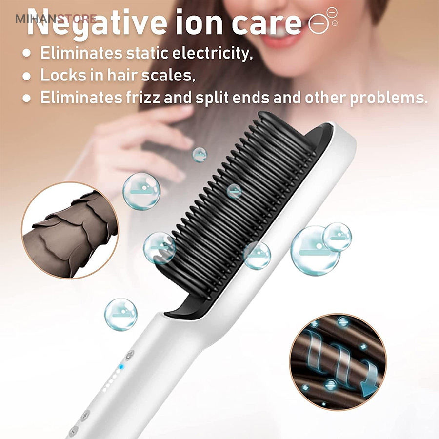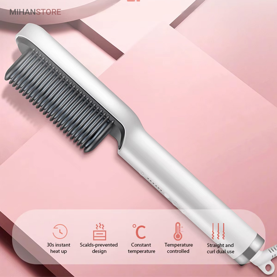 هنگامی که شما تصمیم به استفاده از برس حرارتی گرفته اید بهتر است بدانید که چندین مزایای مختلف را شامل شده اید. مانند: استفاده ی راحت و آسان، وقت گیری کمتر و صافی مو در کوتاه ترین زمان ممکن، صاف شدن مو بی آنکه مو وز کند، کاربرد های متفاوت، حمل آسان و از همه ی این موارد مهم تر، آسیب رسانی کمتر به مو!یکی از بهترین کارکرد های برس حرارتی صاف کننده مو STRAIGHT COMB حداقل آسیبی است که به مو می رساند چرا که مانند برس تنها روی موها کشیده می شود و حرارت درست و صحیحی به موها می دهد که باعث سوختن و آسیب رساندن به مو نخواهد شد.