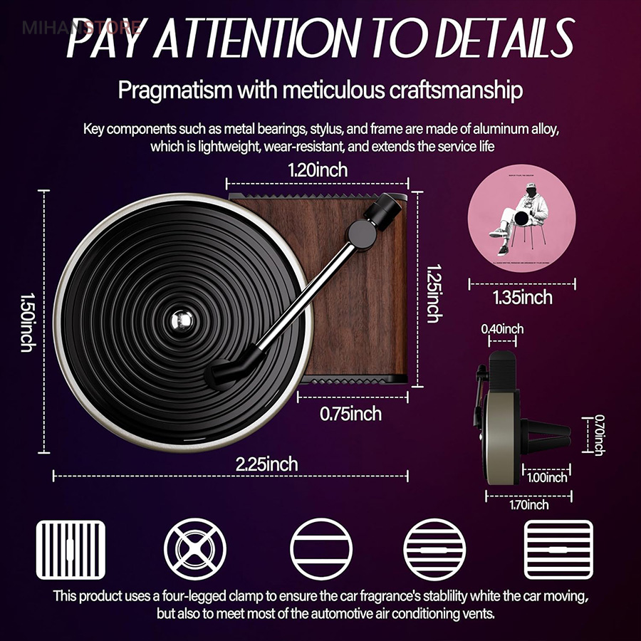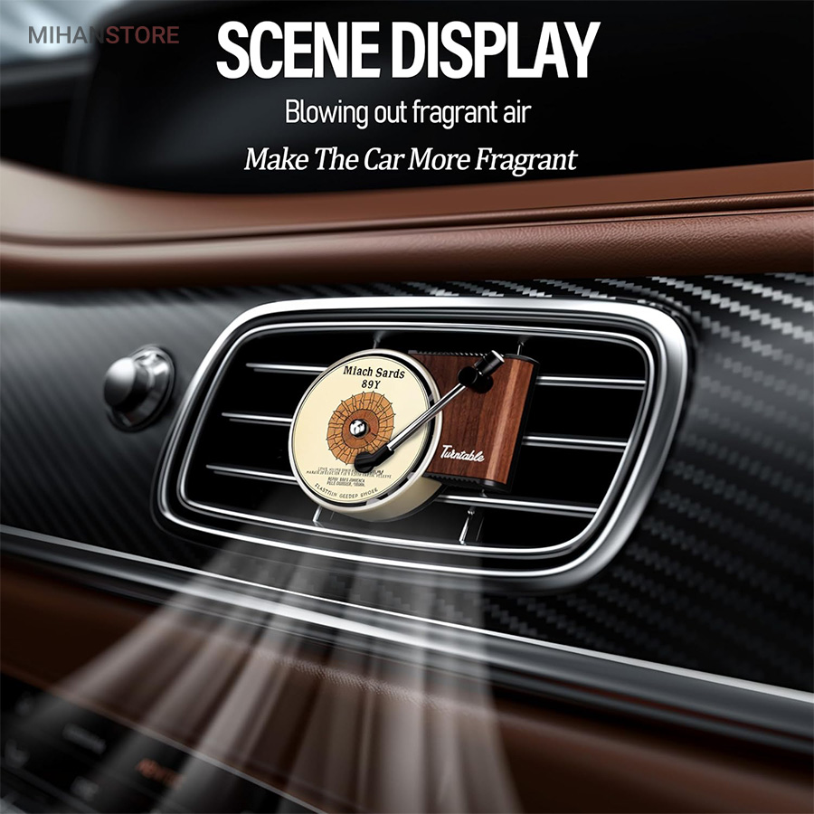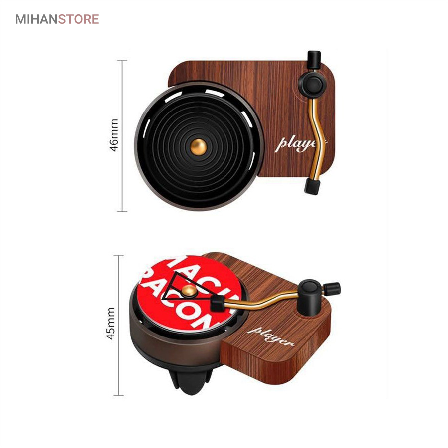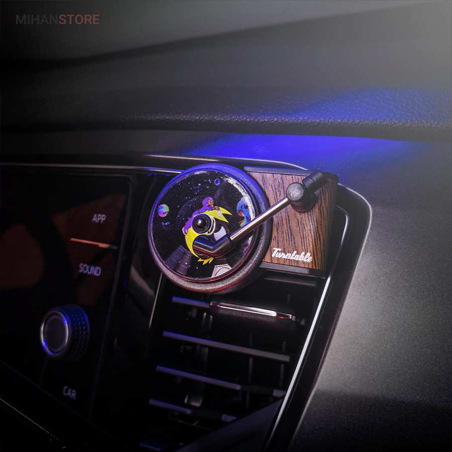 خوشبو کننده داخل خودرو یکی از وسیله های مورد نیاز داخل خودرو است که هم باعث تغییر بوی داخل خودرو میشود هم باعث زیبا تر شدن فضای داخلی خودرو میشود اگر این محصول تزیینی باشد . این محصول در دریچه کولر خودرو نصب میشود و طرح گرامافون دارد که حس نوستالژیکی به داخل خودرو میدهد . با ورود باد کولر یا بخاری به این محصول صفحه روی آن شروع به چرخش میکند همانند یک گرامافون قدیمی . داخل بسته بندی محصول قرص خوشبو کننده قرار دارد که روی صفحه مشکی وسط قرار میگیرد . بعد از اتمام پخش بوی آن میتوایند از هر عطر و ادکلنی که مورد پسند شما است روی آن اسپری کرده و مجدد استفاده کنید .